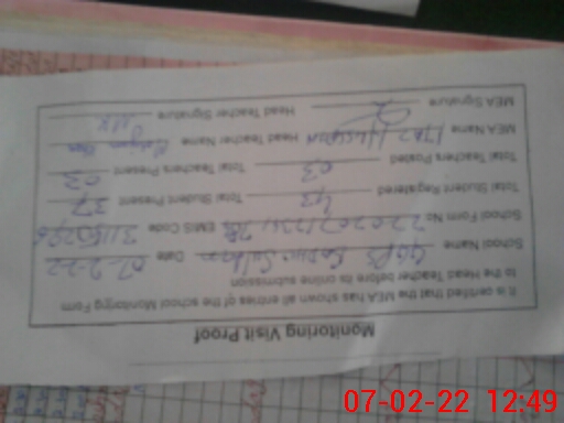 | Attendance Register | Head Teacher | MEA with School | Visit Proof |