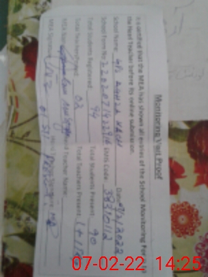| Certified that this School was Inspected by the Undersigned MEA/DMO Today and the Information Stated Above is as Per Record. | |||||