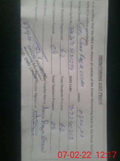 | Total no. of Classrooms: 3 No. of Classrooms Used for Teaching: 3 No. of Classrooms Storing Old Furniture, FTBs, etc: 0Comments if Any: NO VISIT BY HEALTH DEPARTMENT IN SCHOOL LAST 03 MONTHS |