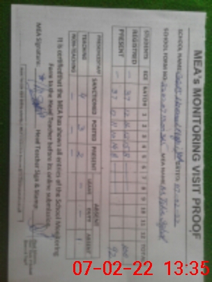 | Certified that this School was Inspected by the Undersigned MEA/DMO Today and the Information Stated Above is as Per Record. | |||||
