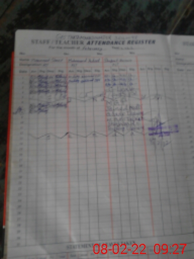 | Remarks (Use Separate Page if Required): Muhammad Adeel PST Head Teacher Absent from first Feb 2022 | |||||