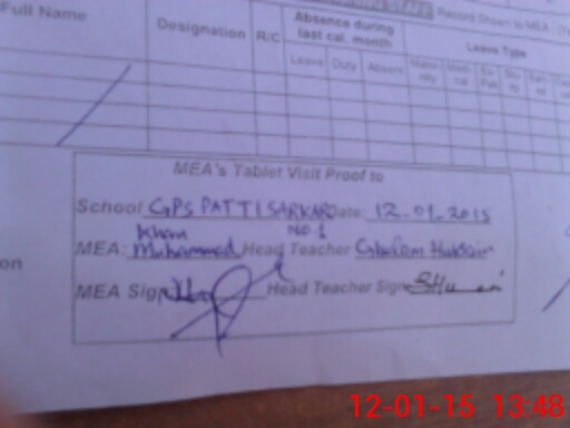 | Attendance Register | Head Teacher | MEA with School | Visit Proof |