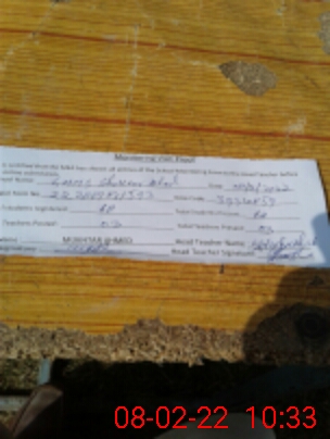 | Name: IF**** AH**** Designation: (School Headmaster's/Headmistress's) PST Phone/Cell Number: 03**** |