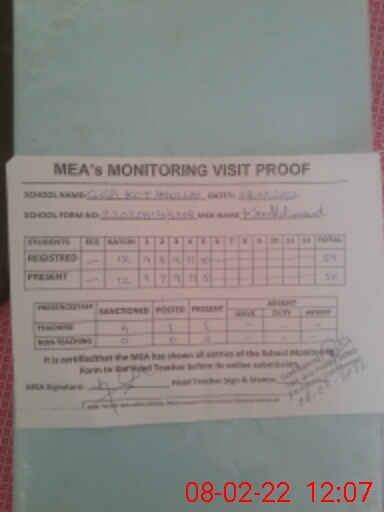 | Certified that this School was Inspected by the Undersigned MEA/DMO Today and the Information Stated Above is as Per Record. | |||||