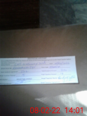| Name: MU**** ZA**** IQ**** AN**** Designation: (School Headmaster's/Headmistress's) S.H.M Phone/Cell Number: 03**** |