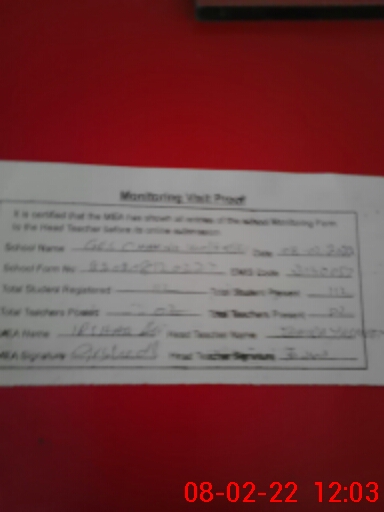 | Attendance Register | Head Teacher | MEA with School | Visit Proof |
