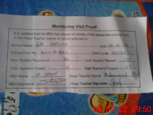 | EMIS Code: 31150453 | Name of School: GPS MIRZEKA | |||