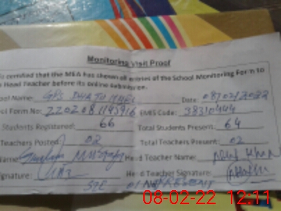 | Certified that this School was Inspected by the Undersigned MEA/DMO Today and the Information Stated Above is as Per Record. | |||||