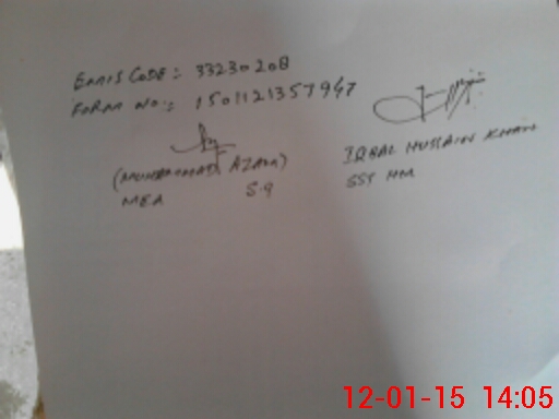| Name: MU**** NA**** Designation: (School Headmaster's/Headmistress's) SSE Phone/Cell Number: 03**** |