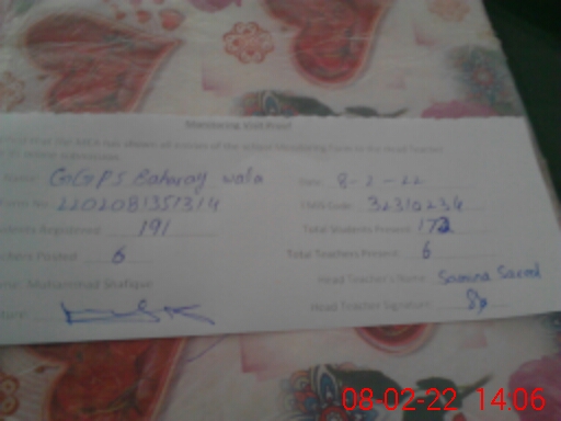 | EMIS Code: 32310234 | Name of School: GGPS BAHARAY WALA | |||