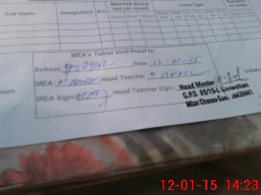 | Attendance Register | Head Teacher | MEA with School | Visit Proof |