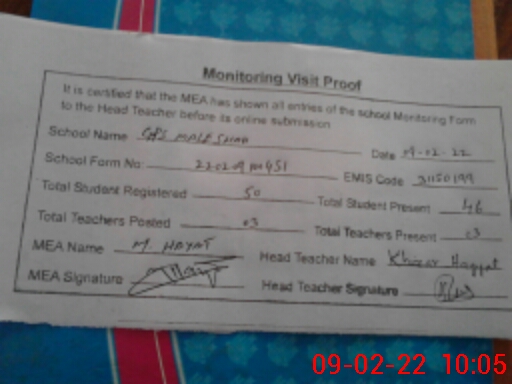| EMIS Code: 31150199 | Name of School: GPS MALE SHAH | |||