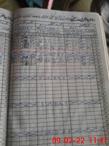 | CNIC | Full Name | Designation | R/C | Absence During Last Calender Month |