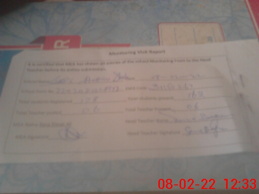 | Certified that this School was Inspected by the Undersigned MEA/DMO Today and the Information Stated Above is as Per Record. | |||||