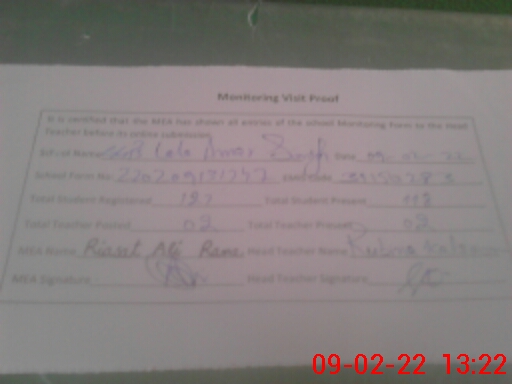 | Certified that this School was Inspected by the Undersigned MEA/DMO Today and the Information Stated Above is as Per Record. | |||||