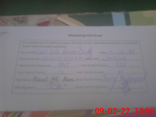 | Certified that this School was Inspected by the Undersigned MEA/DMO Today and the Information Stated Above is as Per Record. | |||||