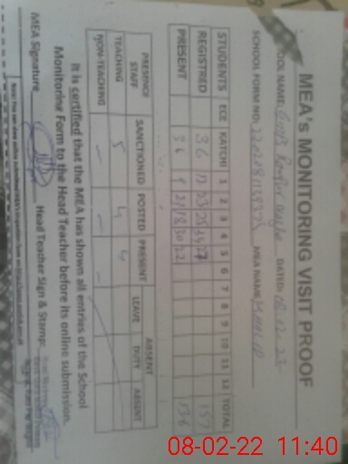 | Certified that this School was Inspected by the Undersigned MEA/DMO Today and the Information Stated Above is as Per Record. | |||||