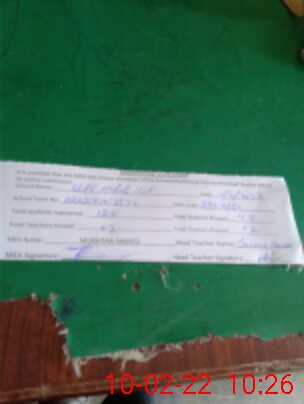 | Certified that this School was Inspected by the Undersigned MEA/DMO Today and the Information Stated Above is as Per Record. | |||||