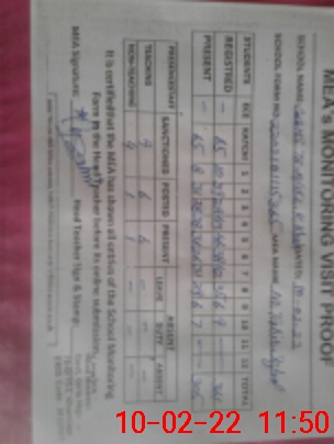 | Monitoring Date: 10-02-2022 | Start Time: 10-02-2022 11:15 AM | End Time: 10-02-2022 11:50 AM | Name of MEA: M.Ta**** Iq**** (S**** | |