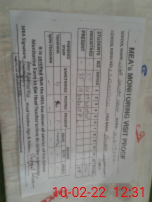 | Certified that this School was Inspected by the Undersigned MEA/DMO Today and the Information Stated Above is as Per Record. | |||||