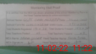 | Attendance Register | Head Teacher | MEA with School | Visit Proof |