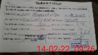 | Monitoring Date: 14-02-2022 | Start Time: 14-02-2022 09:12 AM | End Time: 14-02-2022 09:26 AM | Name of MEA: MA**** ULHA**** KH**** | |