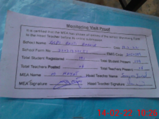 | Certified that this School was Inspected by the Undersigned MEA/DMO Today and the Information Stated Above is as Per Record. | |||||