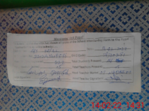 | Attendance Register | Head Teacher | MEA with School | Visit Proof |