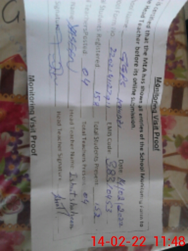 | Monitoring Date: 14-02-2022 | Start Time: 14-02-2022 11:27 AM | End Time: 14-02-2022 11:50 AM | Name of MEA: Gh**** Ya**** (R**** | |
