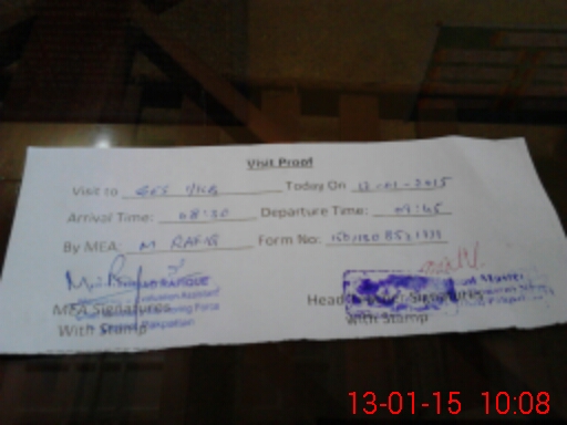 | Monitoring Date: 13-01-2015 | Start Time: 13-01-2015 08:51 AM | End Time: 13-01-2015 10:10 AM | Name of MEA: Mu**** Ra**** | |