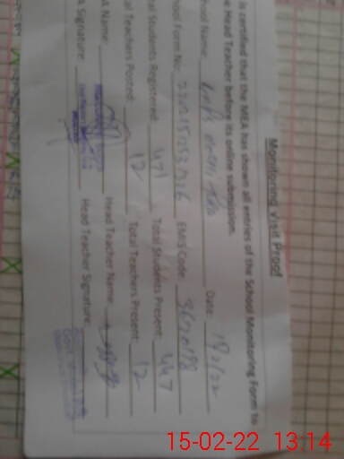 | Certified that this School was Inspected by the Undersigned MEA/DMO Today and the Information Stated Above is as Per Record. | |||||