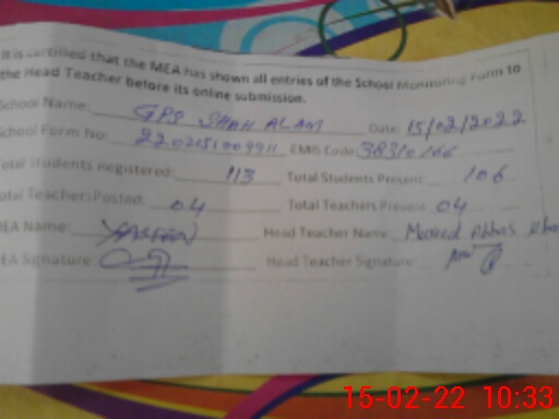 | EMIS Code: 38310166 | Name of School: GPS SHAH ALAM WALA | |||