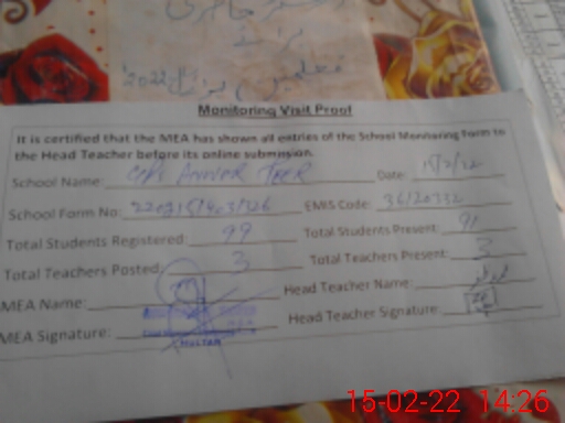 | EMIS Code: 36120332 | Name of School: GPS ANWAR PEER SHUJABAD | |||