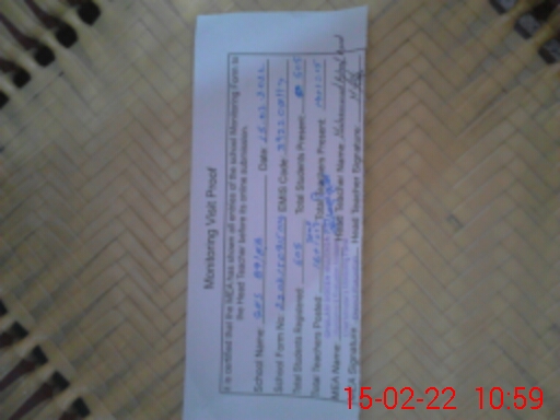 | Attendance Register | Head Teacher | MEA with School | Visit Proof |