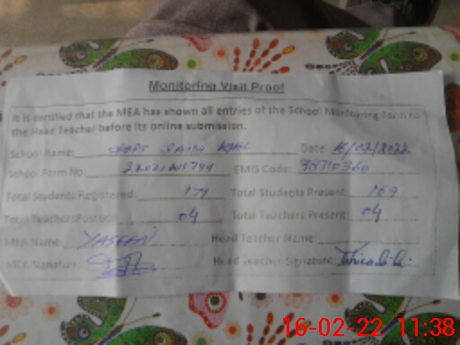 | Certified that this School was Inspected by the Undersigned MEA/DMO Today and the Information Stated Above is as Per Record. | |||||