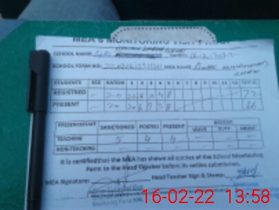 | Attendance Register | Head Teacher | MEA with School | Visit Proof |