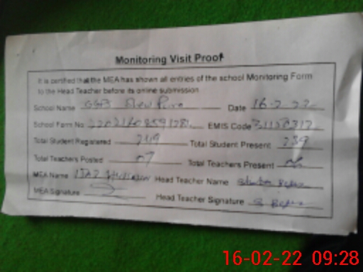 | Certified that this School was Inspected by the Undersigned MEA/DMO Today and the Information Stated Above is as Per Record. | |||||