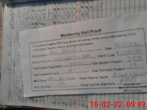| Certified that this School was Inspected by the Undersigned MEA/DMO Today and the Information Stated Above is as Per Record. | |||||