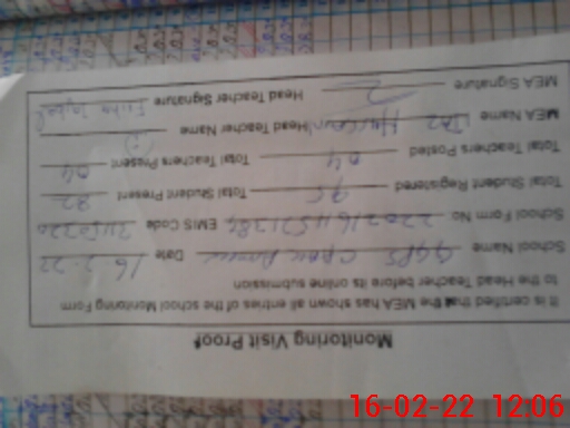 | Certified that this School was Inspected by the Undersigned MEA/DMO Today and the Information Stated Above is as Per Record. | |||||