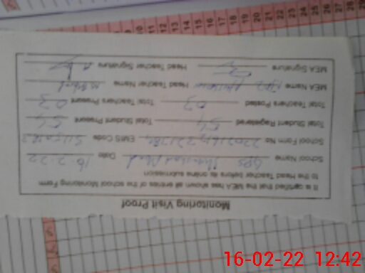 | Attendance Register | Head Teacher | MEA with School | Visit Proof |