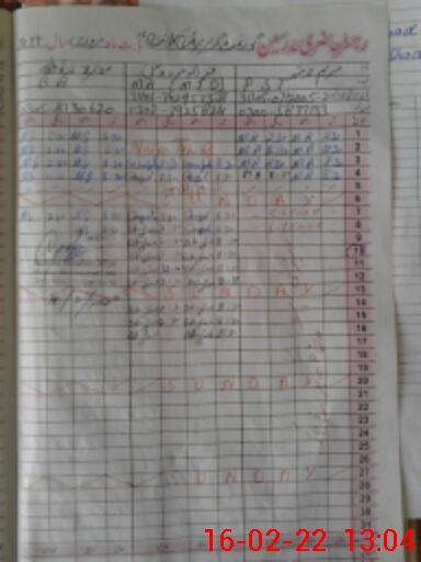 | CNIC | Full Name | Designation | R/C | Absence During Last Calender Month |