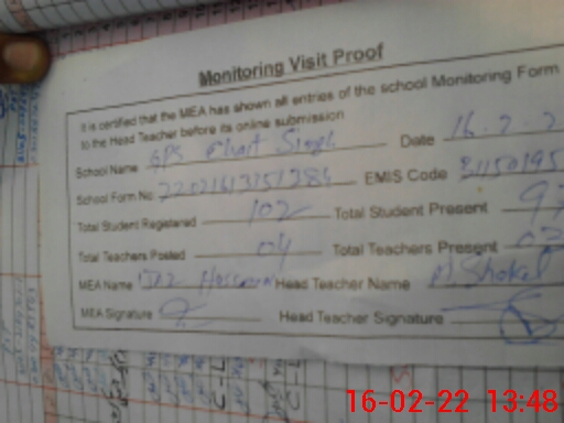 | Certified that this School was Inspected by the Undersigned MEA/DMO Today and the Information Stated Above is as Per Record. | |||||