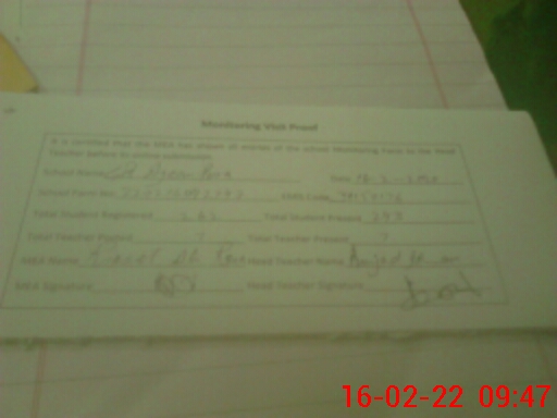 | Attendance Register | Head Teacher | MEA with School | Visit Proof |