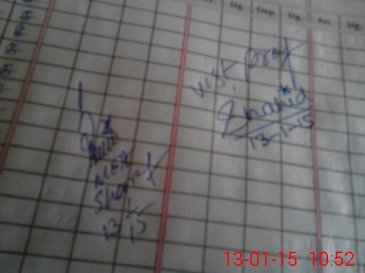 | Monitoring Date: 13-01-2015 | Start Time: 13-01-2015 10:16 AM | End Time: 13-01-2015 10:53 AM | Name of MEA: MU**** SH**** | |