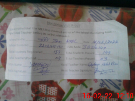 | Attendance Register | Head Teacher | MEA with School | Visit Proof |