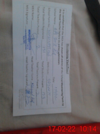 | Certified that this School was Inspected by the Undersigned MEA/DMO Today and the Information Stated Above is as Per Record. | |||||