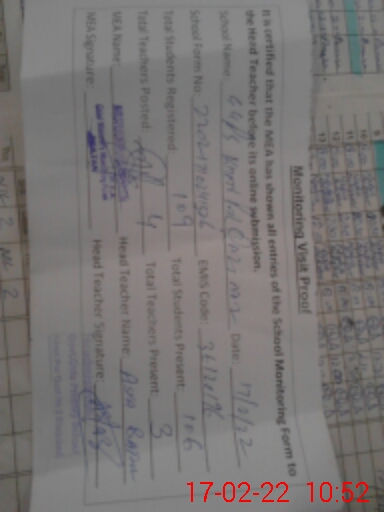 | Certified that this School was Inspected by the Undersigned MEA/DMO Today and the Information Stated Above is as Per Record. | |||||
