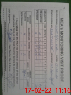 | Monitoring Date: 17-02-2022 | Start Time: 17-02-2022 10:25 AM | End Time: 17-02-2022 11:17 AM | Name of MEA: M.Ta**** Iq**** (S**** | |