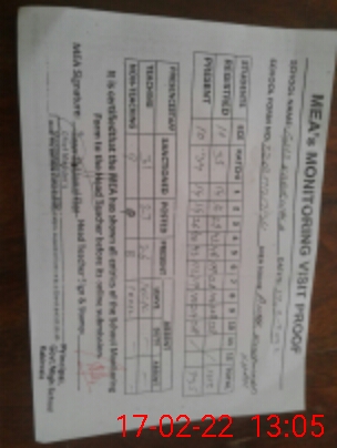 | Certified that this School was Inspected by the Undersigned MEA/DMO Today and the Information Stated Above is as Per Record. | |||||