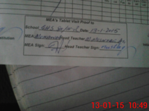 | Attendance Register | Head Teacher | MEA with School | Visit Proof |
